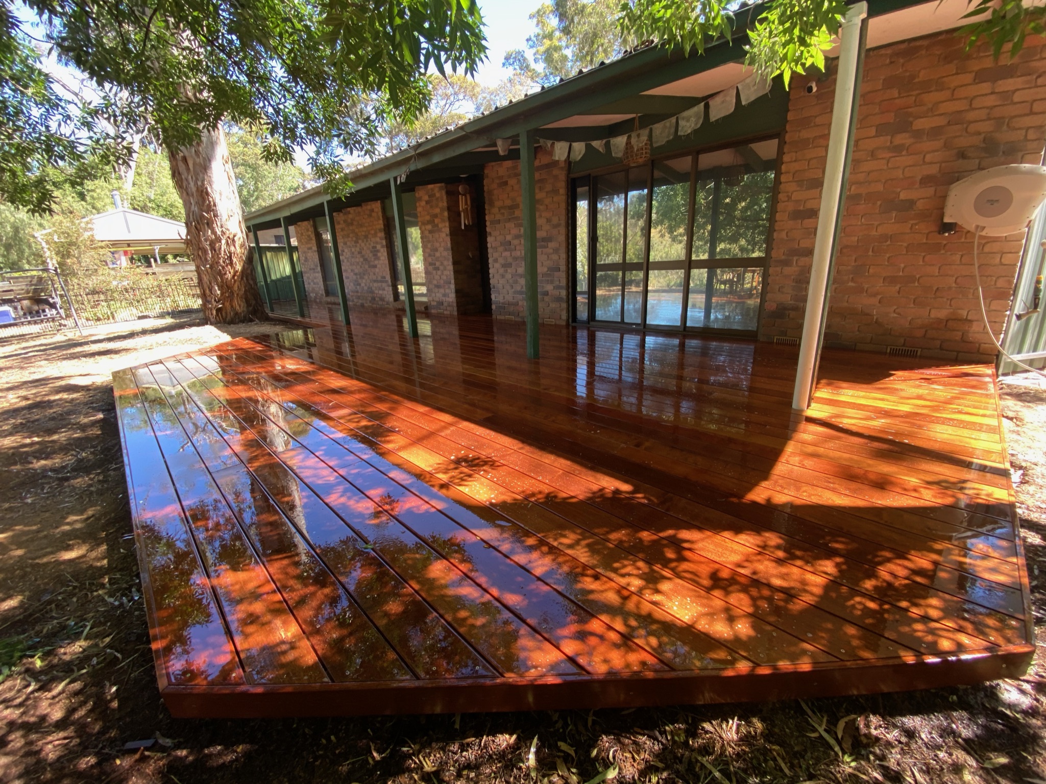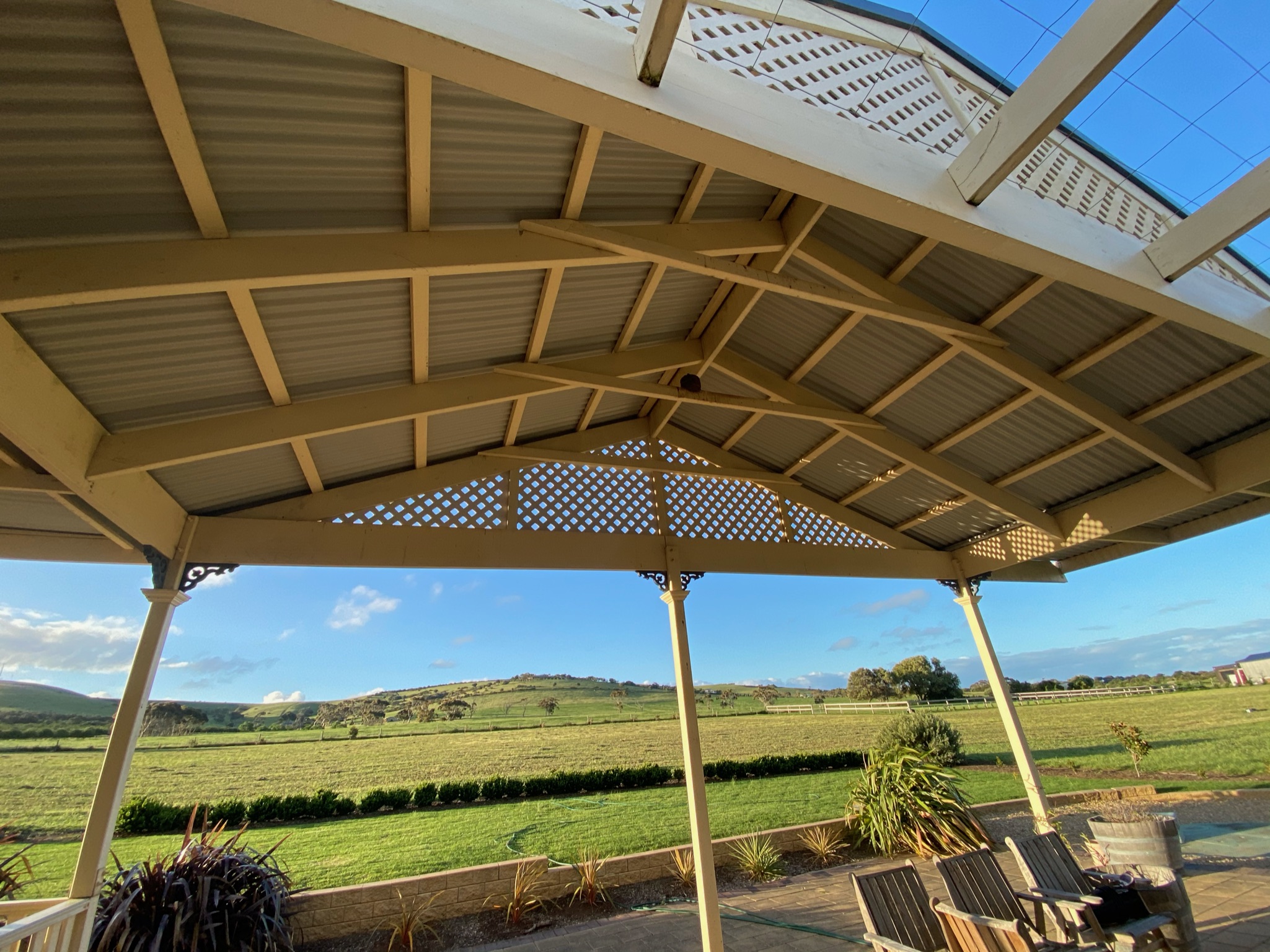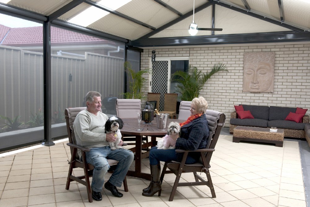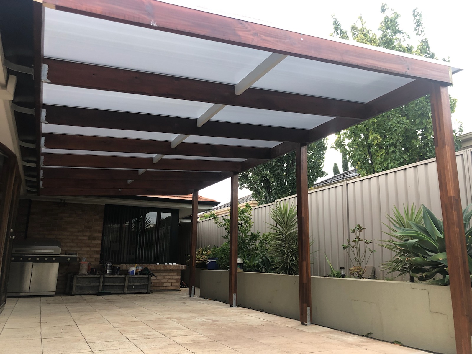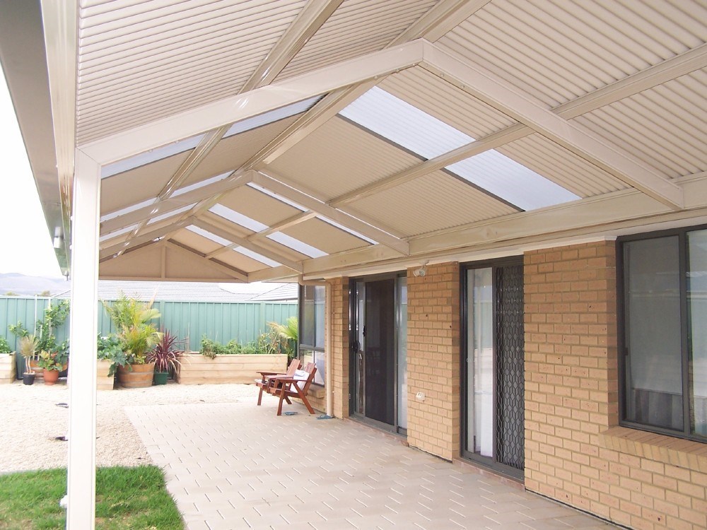 This elegant Colorbond verandah, featuring a durable Fibreglass roof, enhances the outdoor space with its modern design. Ideal for patios, it reflects top-notch home improvement with Bluescope materials and professional builder craftsmanship.