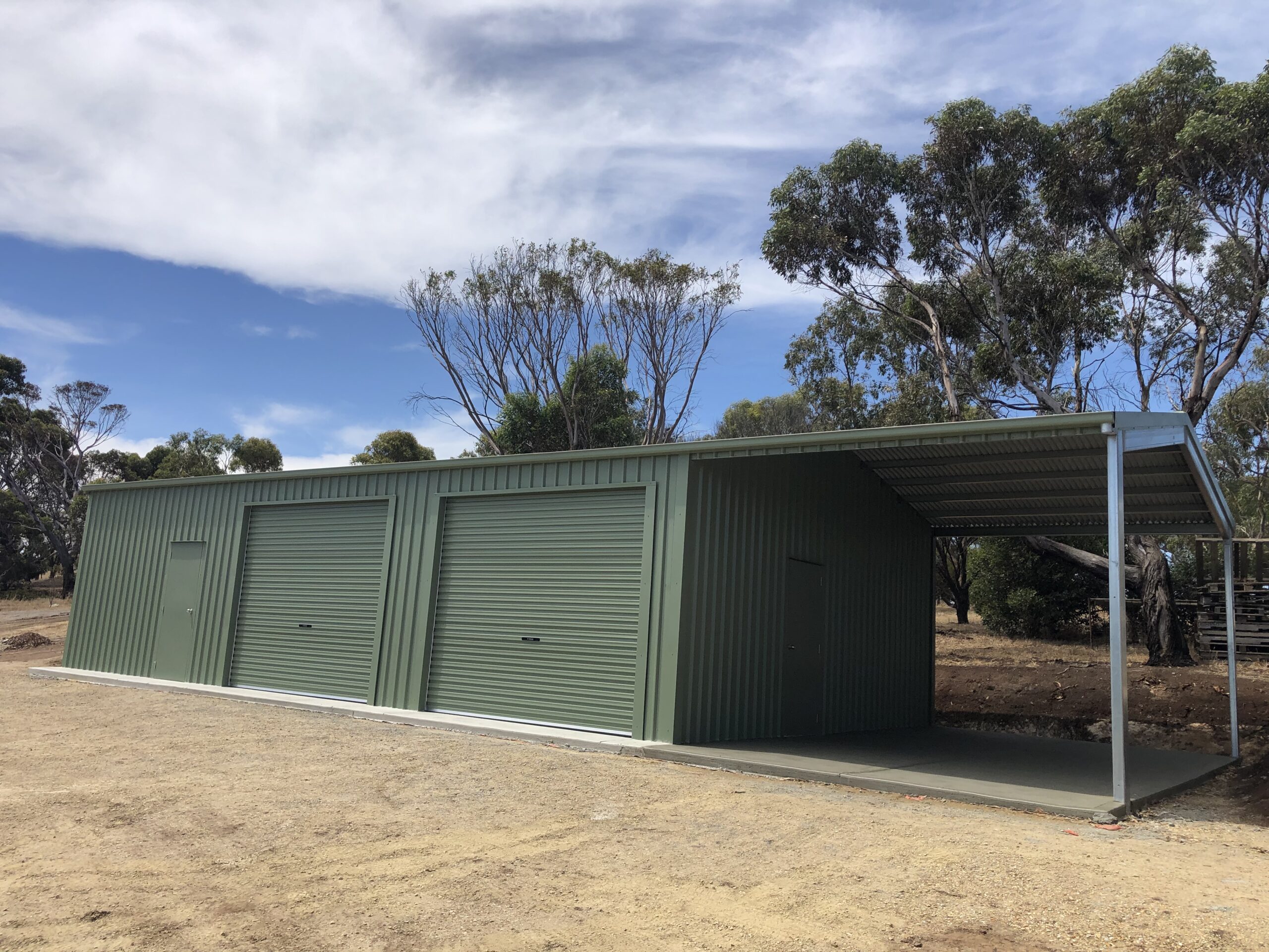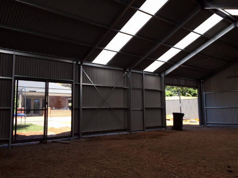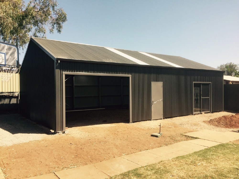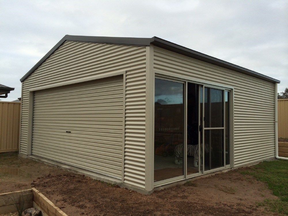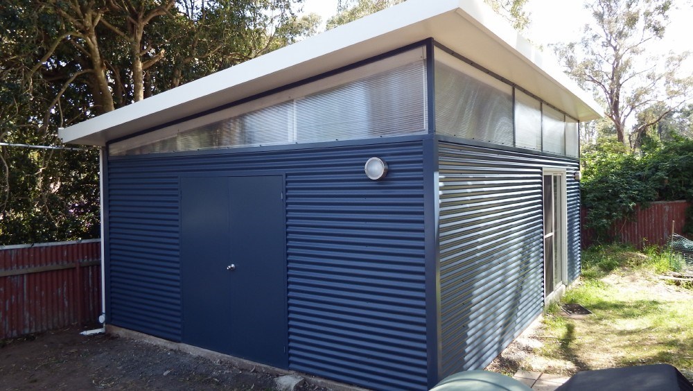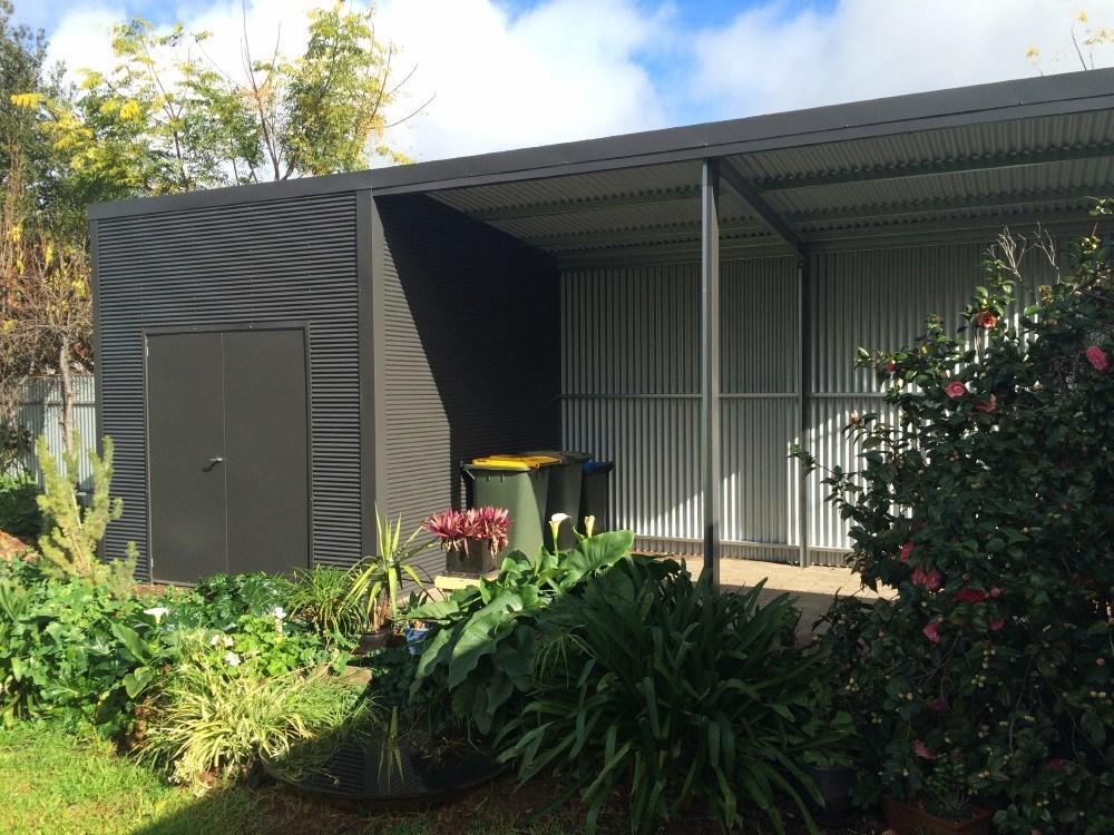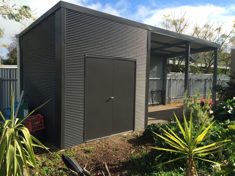 A bespoke custom shed combining steel and timber, perfect for garden storage or as a woodshed, showcasing the benefits of customised sheds for modern home improvements.